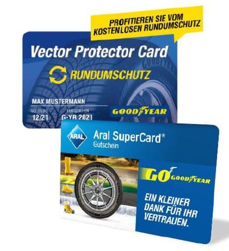 Rüstet Ihr Kunde innerhalb eines Jahres nach Kauf der vier Vector 4Seasons Reifen bei Ihnen um, erhält er als Dankeschön von Goodyear das zweite Jahr Gratis plus einen Tankgutschein in Höhe der Umsteckkosten